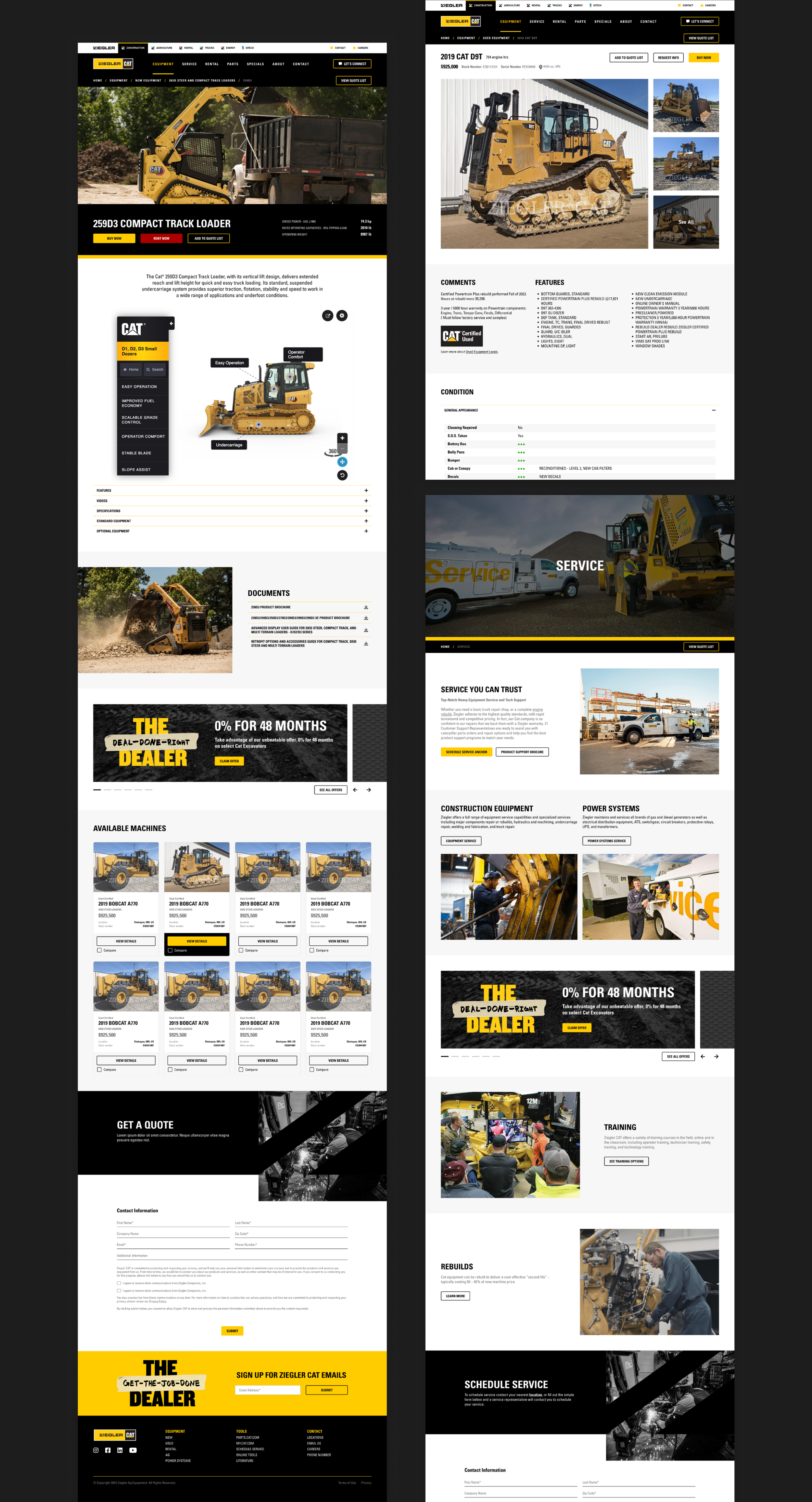 As part of a larger visual refresh for Ziegler Companies, the CAT division received a redesigned website. Leveraging an existing component library and design system—along with direct content feeds from CAT corporate—the new site introduced updated design elements and an e-commerce–inspired experience that modernized the way customers engage with the brand and purchase equipment.